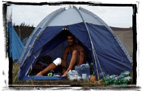 Wigg. In tent, nursing knee