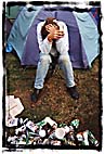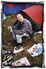 The lightweights, however, crashed very early - 9pm in Wigg's case, leaving the rest of us with William the security man, who stumbled, very pissed, into the circle of tents. He slumped on the ground, blagged a can and mumbled incoherently for an hour or so before passing out. With his hand down his trousers. We couldn't wake him up, so we left him on the ground to sleep it off.