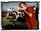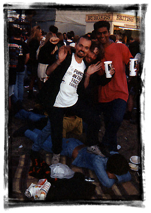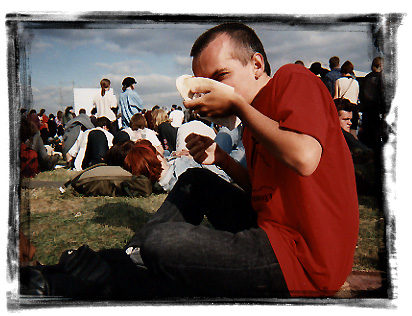 A year with one truly glorious defining moment: Kev's spectacular projectile vomit in the British Home Stores restaurant. This magnificent achievement was brought on by the vodka passed around by the French people camped next to us. What they didn't tell us - until it was too late - was that the vodka was home-made... Sadly, I missed Kev's moment of glory as I was far too ill to get out of the tent in the morning. Top marks go to those who simply moved their trays to another table and carried on eating after this little incident. I salute you! What I'd give for a copy of the security video from that morning...