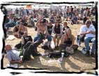 Anticipating big crowds, we took the fastest possible route to Reading, with the aim of meeting the others in the festival car park. As luck would have it, we phoned them from Reading Services on the M4 just as they were pulling into the Services car park. We travelled to the site in convoy. Our favoured camp-site was rammed, but our usual spot appeared like magic from the sea of tents already up its almost as if its reserved for us.