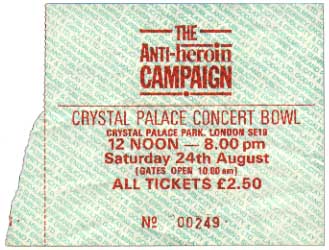 Possibly the strangest festival line-up I've ever seen: "forces sweetheart", Dame Vera Lynn headlines the one-day event over rock legends Hawkwind, who are, in turn supported by some of the popular - and not so popular alternative acts of the mid-80s. And ageing prog-rockers The Enid... And all in aid of Pete Townshend's "Double-0" anti-heroin campaign.